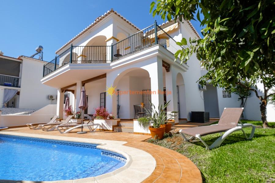 Vi præsenterer denne charmerende villa beliggende i et meget roligt boligområde, med hurtig adgang til Nerja, kun få minutter fra stranden og med direkte forbindelse til motorvejen. Malaga ligger 50 km derfra, og lufthavnen ligger kun 45 minutters kørsel derfra.