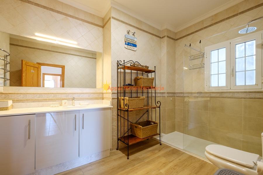 Begge badeværelser er blevet delvist renoveret for nylig. Ejendommen sælges fuldt møbleret, herunder nye senge og sofaer.