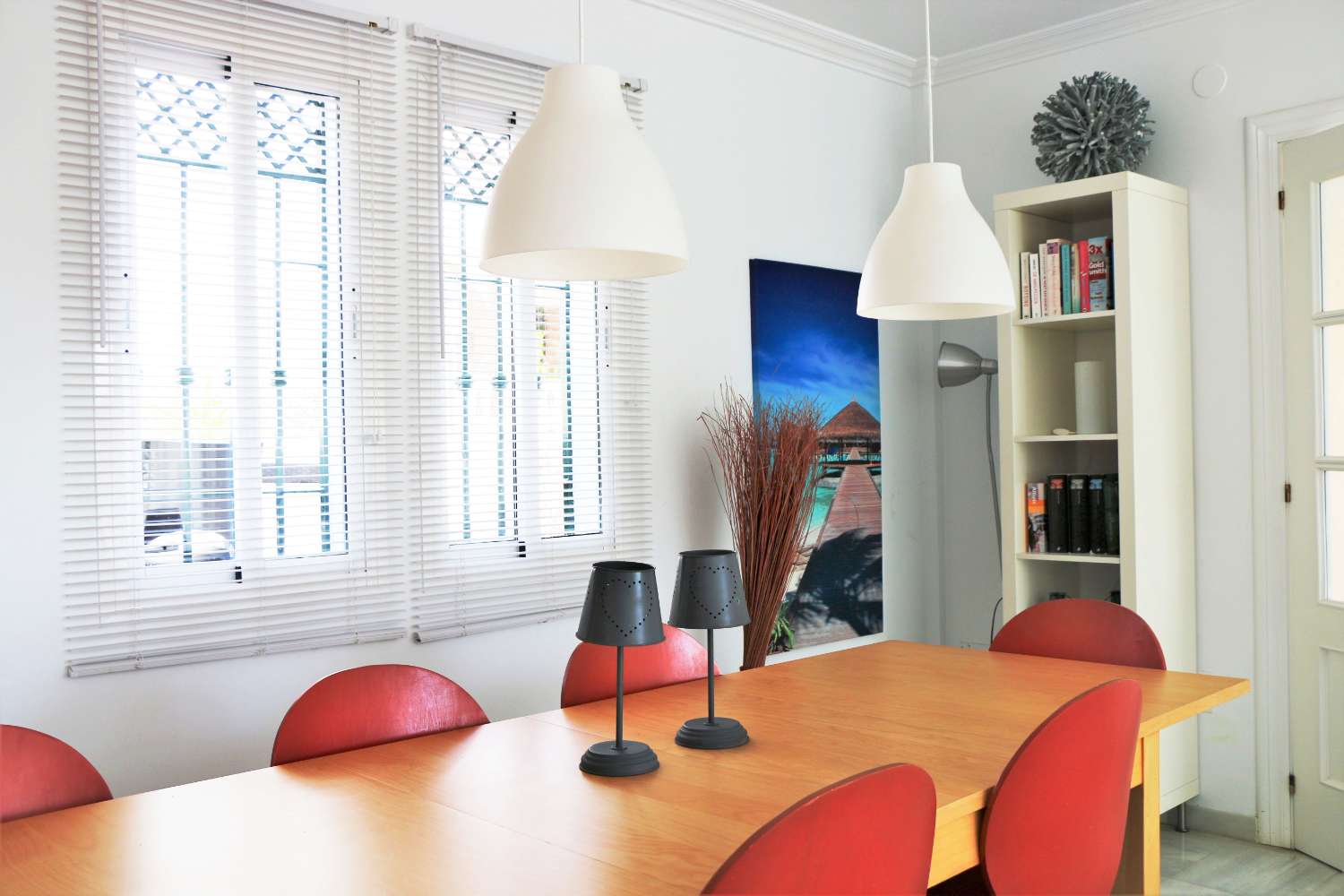 The bright living room has IP-TV (all channels in the world), DVD/CD player with USB connection. In the living room there is a sitting area and a large dining table. The sliding doors give access to one of the terraces.